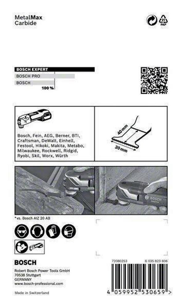 Herausragende Lebensdauer in harten und zähen Metallen! Zusätzliche Beschichtung macht Carbide härter Wenn gehärtete Schrauben rosten oder auf andere Weise stecken bleiben · besteht die einzige Option darin · sie flach an der Oberfläche abzuschneiden. Der EXPERT MetalMax macht auch in gehärtetem Metall einen perfekten bündigen Schnitt. Mit seiner herausragenden Langlebigkeit ist es das perfekte Zubehör für Handwerker · die harte Materialien mit einem Multifunktionswerkzeug schneiden möchten. Du hast gesehen · wie mühelos das Multifunktionswerkzeug in und durch Holz sägen kann: Mit dem Bosch EXPERT MetalMax Blatt für Multifunktionswerkzeuge kann Metall genauso zersägt werden. Es sägt sogar mühelos gehärtete Fensterschrauben und Armierungen. Überragende Lebensdauer dank Bosch Carbide Technology