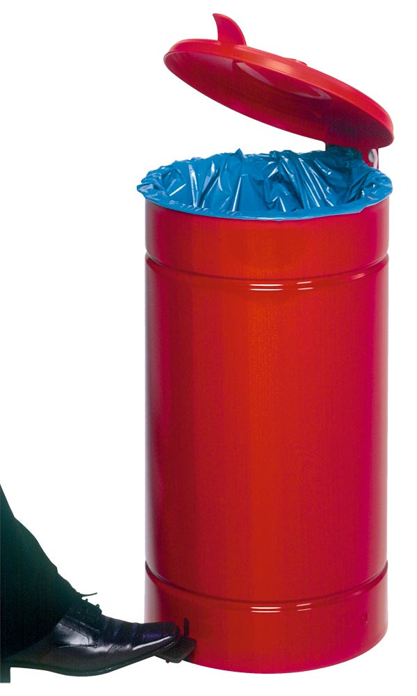 Tretabfallsammler, fußbetätigt, Stahlblech, Volumen 60 Liter, Durchm. 450 mm, Höhe 700 mm, Behälter rot, Deckel rot