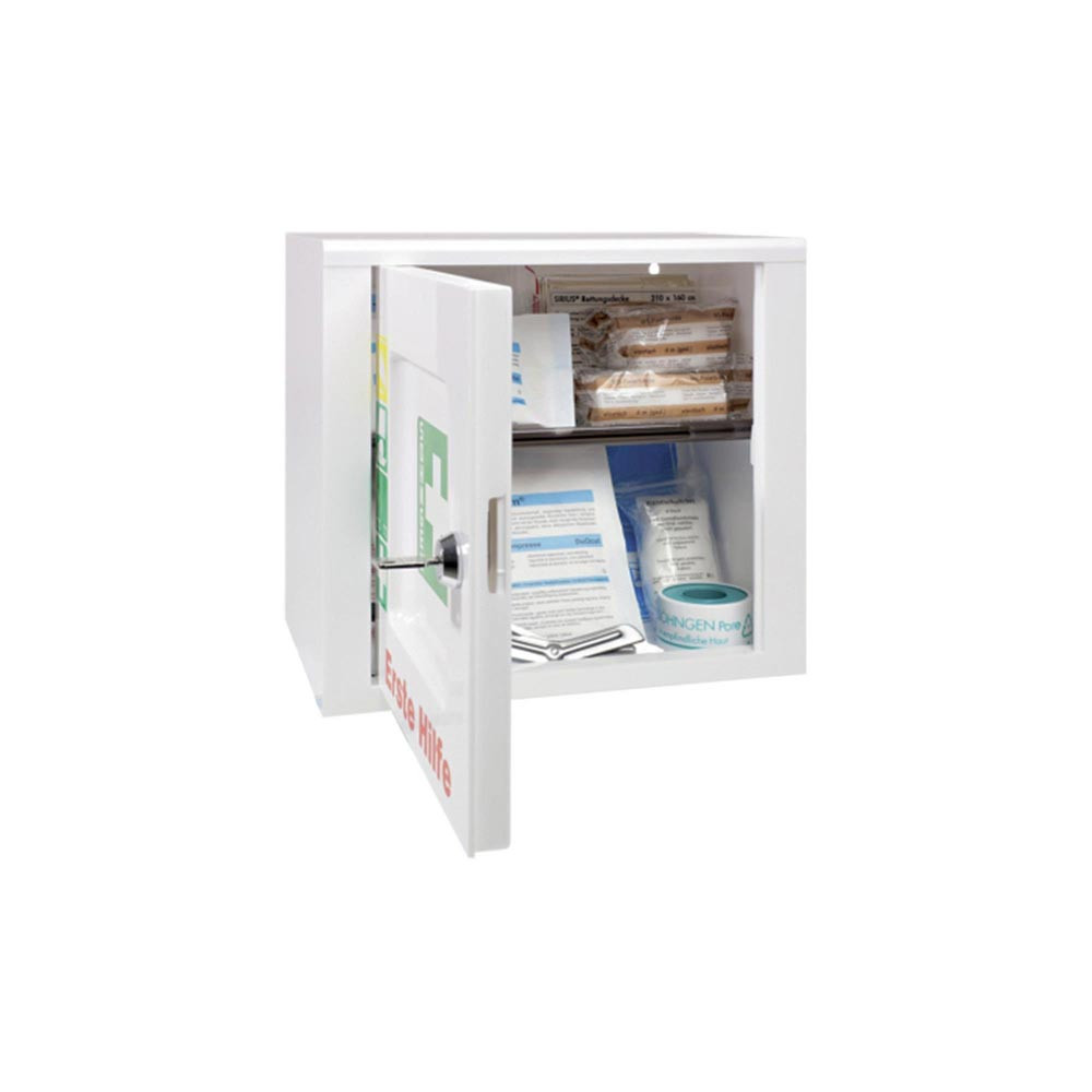 Lieferumfang: 1 Erste Hilfe Füllung DIN 13157 , 2 x Schlüssel, Befestigungsmaterial