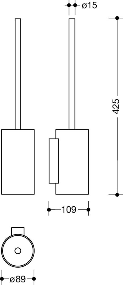 bestehend aus Halter · WC-Bürstentopf (auswechselbar) und WC-Bürste · aus hochwertigem Edelstahl · matt geschliffen · 89 mm breit · 440 mm hoch und 109 mm tief · inkl. korrosionsfreiem Befestigungsmaterial.