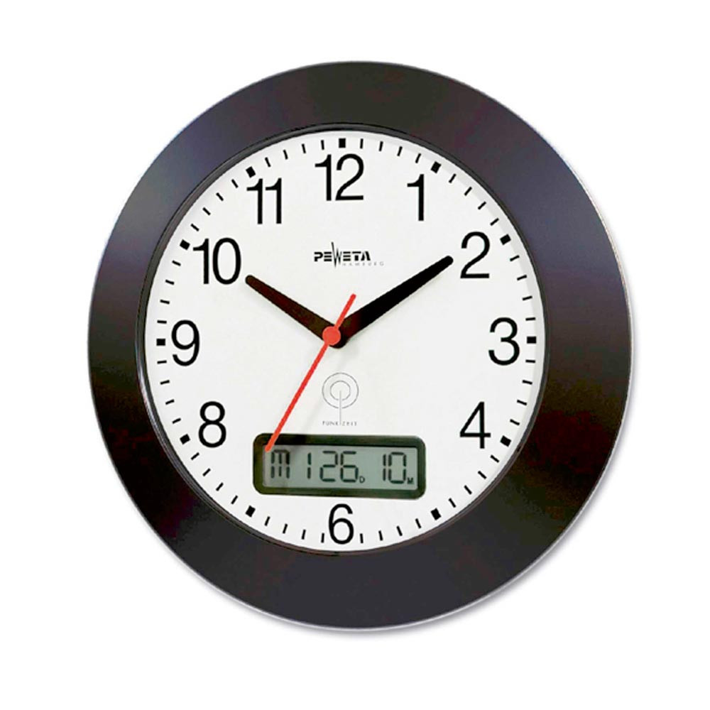 Wanduhr Funkuhr Kunststoff schwarz Ø 300 mm Zahlen