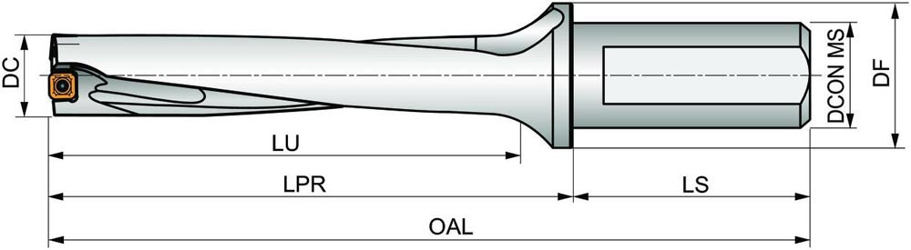 Wendeschneidplattenbohrer zum einsetzen von einer XPET 0903.. Wendeschneidplatten als Zentrumschneide und einer SCET 09T3.. Wendeschneidplatte als Außenschneide · Bohrdurchmesser 31mm · mit einem 32mm abgeflachten Zylinderschaft nach ISO 9766 und Innenkühlung für maximale Bohrtiefen bis 5 x D
