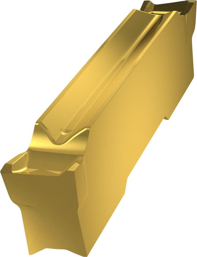 Doppelseitige Wendeschneidplatte zum Ein- und Abstechen · 25 mm lang · mit einer Schnittbreite von 4 mm und Eckradien von 0,2 mm · 12° und einer Schnittbreitentoleranz von ±0,05. Sorte G8330 PVD-beschichtetes feinkörniges WC-Co-Hartmetall innerhalb der ISO-Sortenbereiche P25–P40 und K20–K40 für die Bearbeitung von Stahl und Gusseisen. PR-Geometrie mit negativer Fase · erste Wahl für schwieriges Einstechen und Abstechen sowie kontinuierliche bis unterbrochene Schnitte.