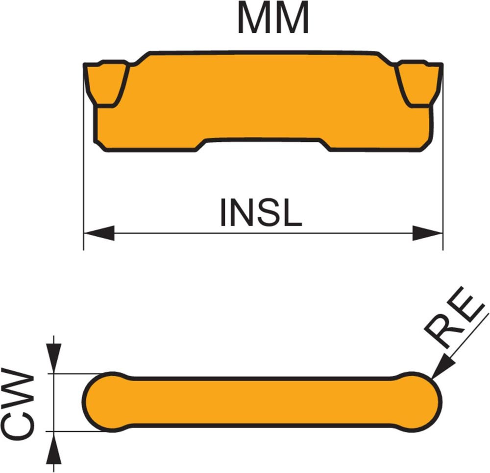 Doppelseitige Wendeschneidplatte zum Ein- und Abstechen · 26 mm lang · mit einer Schnittbreite von 5 mm und einem Vollradius von 2,5 mm und einer Schnittbreitentoleranz von ±0,05. Sorte G8330 PVD-beschichtetes feinkörniges WC-Co-Hartmetall innerhalb der ISO-Sortenbereiche P25–P40/M20–M35 und K20–K40 für die Bearbeitung von Stahl · Edelstahl und Gusseisen. MM Geometrie · Vollradius zum Kopieren und Längsdrehen · bei kontinuierlichen bis unterbrochenen Schnitten.