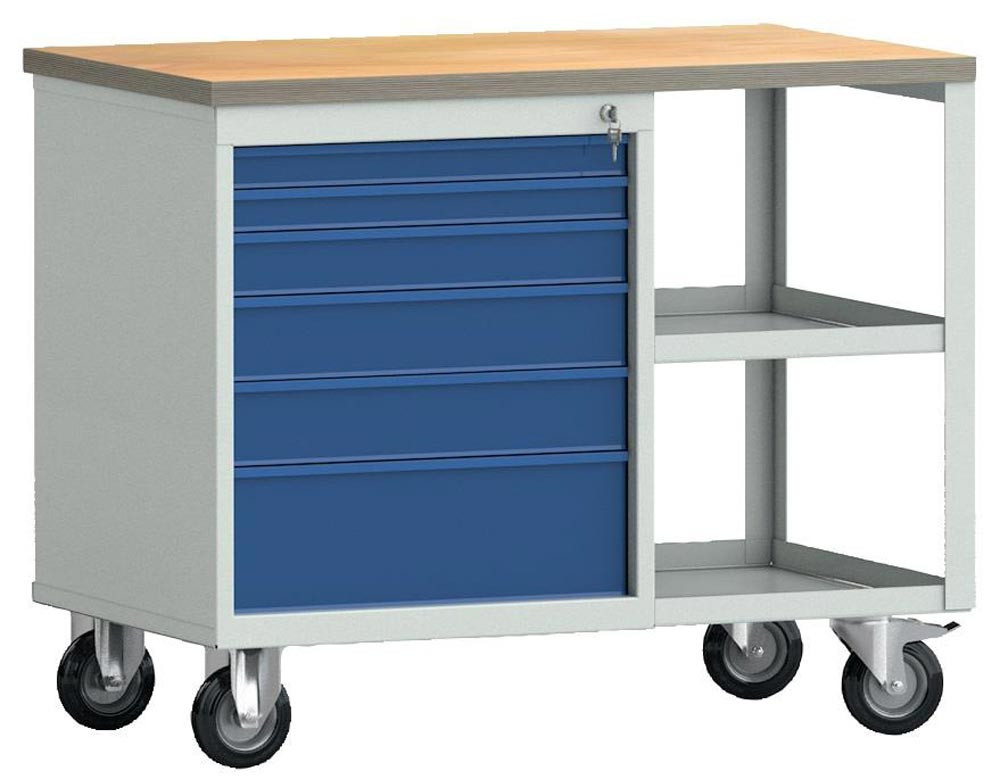 Werkbank PW 700 B1000xT620xH805mm Buche Multiplex lichtgrau / enzianblau 6 Schubl. E6461410