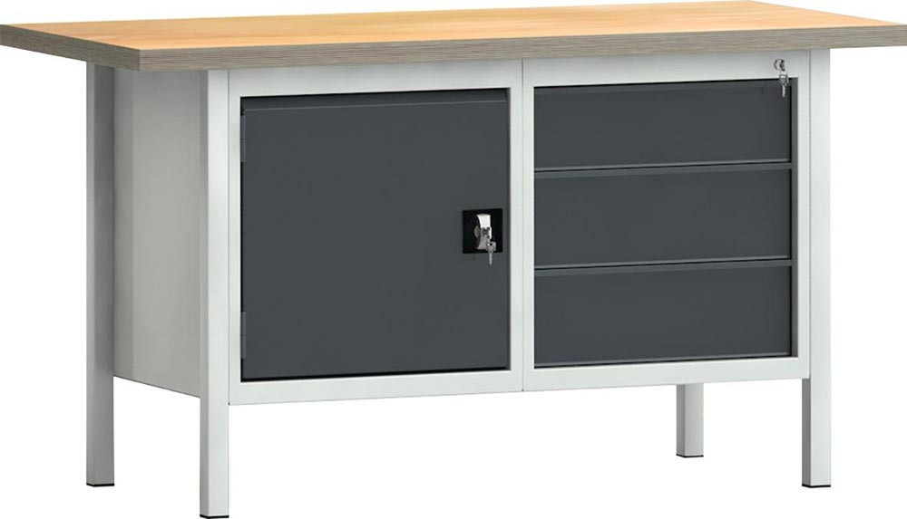 Werkbank PW 700 B1500xT700xH840mm Buche Multiplex lichtgrau / anthrazitgrau 3 Schubl. 1 Tür