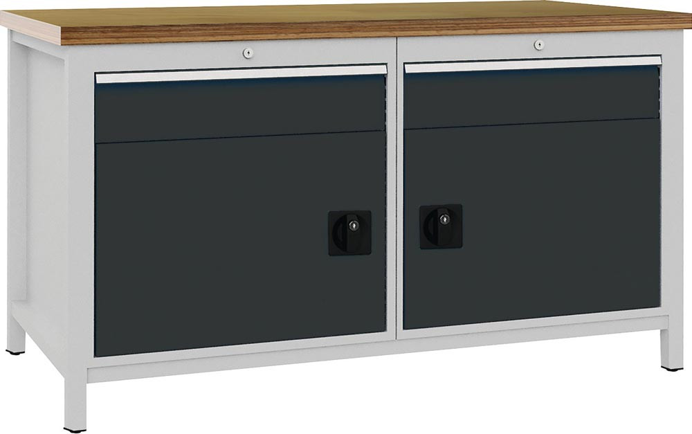 Werkbank anthrazitgrau lichtgrau B1500xH859xT750 mm Buche Multiplex 40 mm 2 Schubladen 2 Türen E6461364