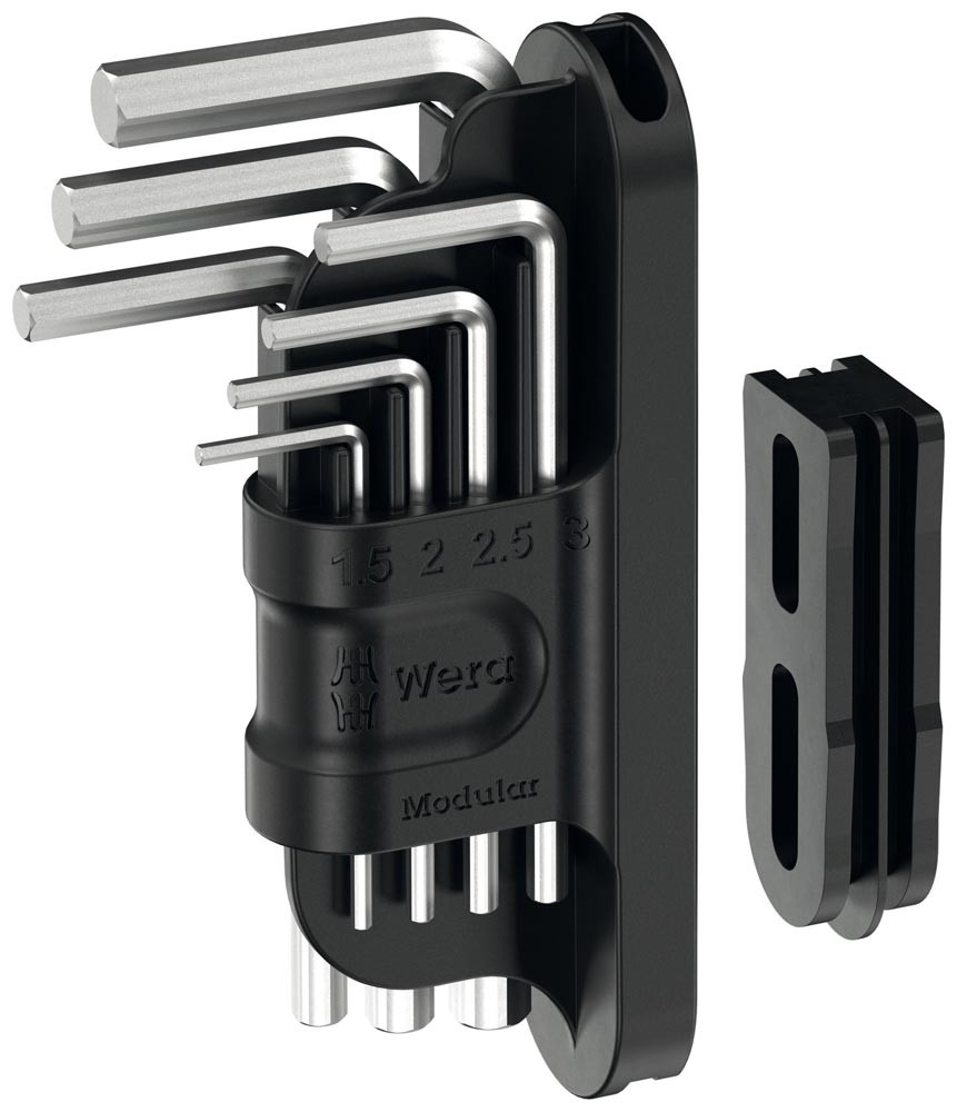 Inhalt: 7 Winkelschlüssel SW 1,5 - 2 - 2,5 - 3 - 4 - 5 - 6 mm im praktischen Kunststoffhalter mit Adapter für Tool-Check Modular
