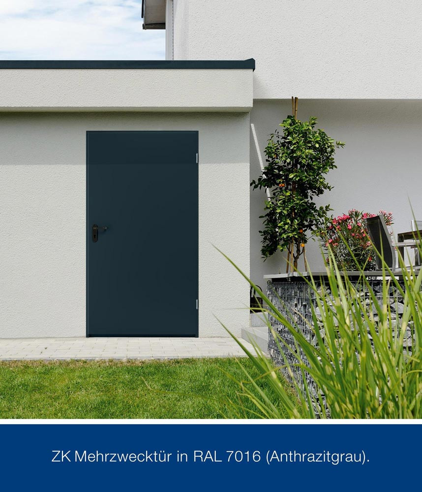 ZK Mehrzwecktür Breite 1000 mm Höhe 2000 mm DIN rechts RAL7016 Stahlblech