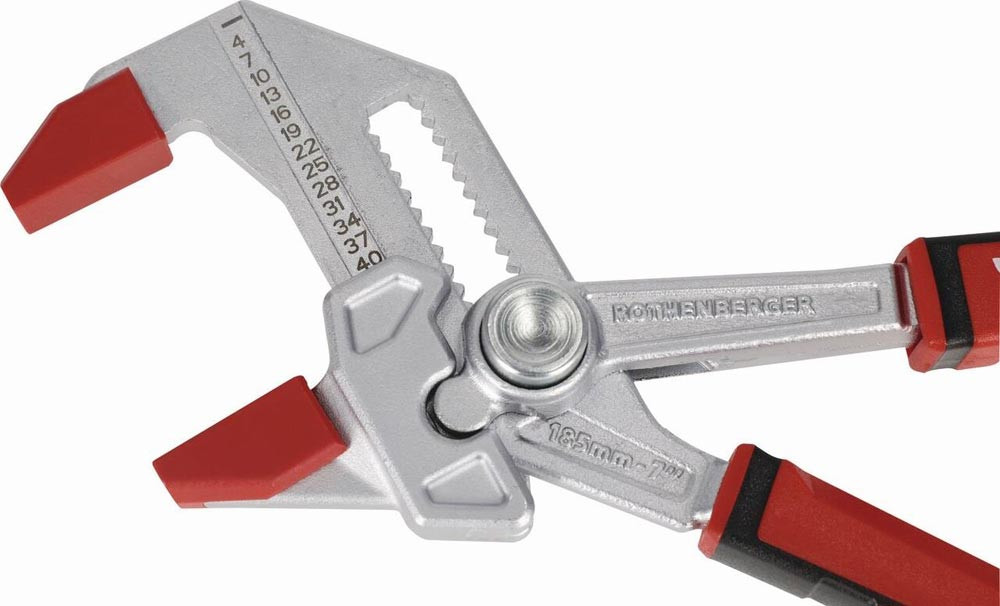 der Zangenschlüssel ist vielseitig nutzbar ob zum Greifen, Halten, Biegen oder als Maulschlüssel-Satz von oberflächenempfindlichen, verchromten Verschraubungen · Plangeformte Backen für schonendes Öffnen oder Anziehen von hochwertigen Schraubverbindungen · Greifkapazität um + 20% erhöht durch Curve-Shape-Design sowie Knopf für Größen-Schnellverstellung · immer sicheren und festen Halt mit dem 2K-Handgriff