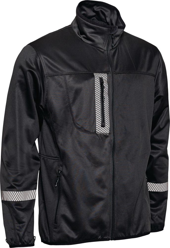 100% Polyester, ca. 240 g/m² · einzippbar durch Elastikschlaufen am Ärmel und am Nacken sowie Reißverschluss an der Front · vertikale Reißverschlusstasche auf der Brusttasche · 2 Seitentaschen mit Reißverschluss · extra Rückenlänge, Gr. L: 77 cm · segmentierte Reflexstreifen an Ärmel, Brusttasche und Rücken · passend zur Regenjacke Art.-Nr. 6435067