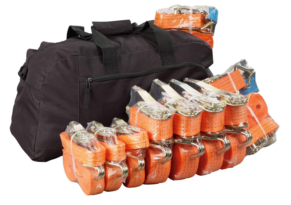 Zurrgurte-Set, bestehend aus 5x6 m 1000 daN + 5x8 m 2500 daN, verpackt in einer Sporttasche