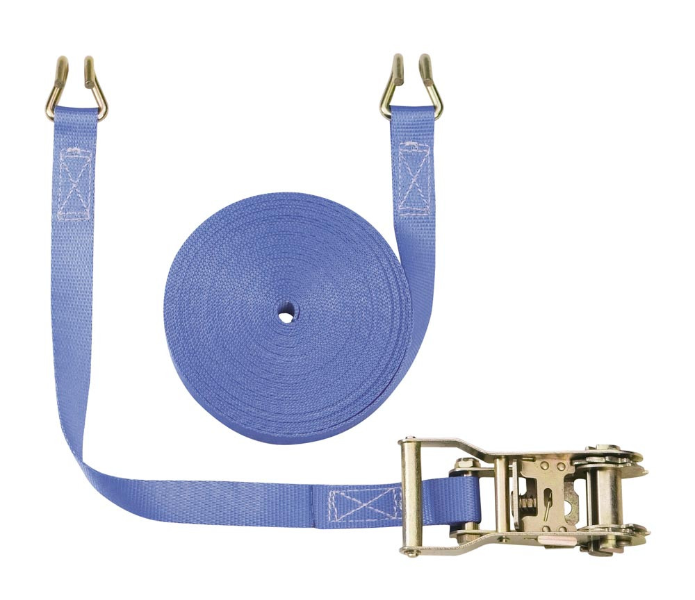 Zweiteiliger Zurrgurt, mit Rahmenhaken, 1000 daN zul. Zugkraft in der Umreifung, Gurtbreite 25 mm, Länge 10 m, Farbe blau, VE 4 Stück